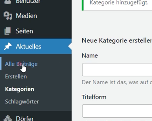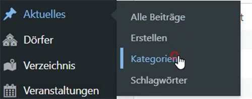 Wähle im Menu unter Aktuelles den Punkt Kategorien aus.