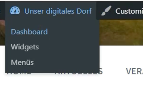 Wechsle einmal die Ansicht auf das Dashboad im Backend der Dorfpage.