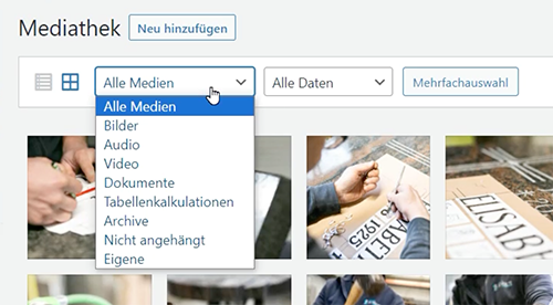 Du kannst alle Medien in der Mediathek nach ihrer Art sortieren lassen, so wirst Du bei Deiner SUche nach bestimmten Dateiformarten schneller fündig.