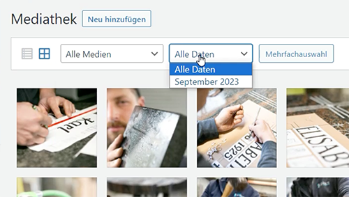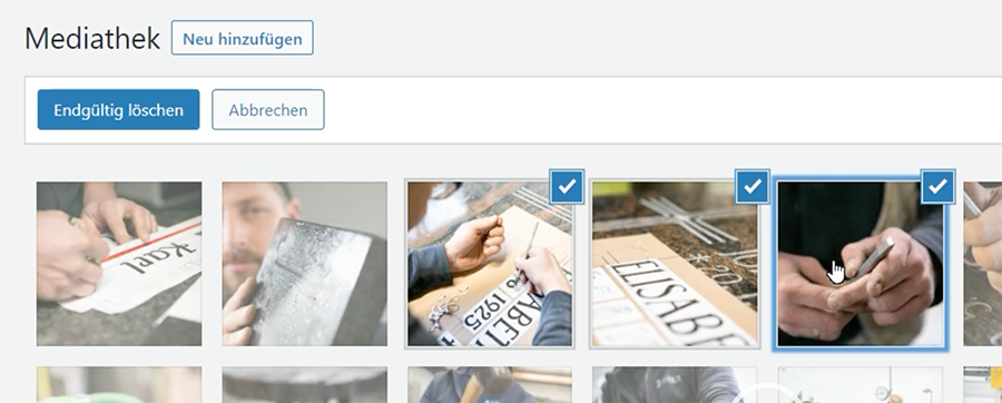 Mit der Merhfachauswahl kannst Du gleichzeitig mehrer Dateien auswählen und dies z.B. löschen, wenn Du ungenutzte Fotos aus der Mediathek entfernen willst.