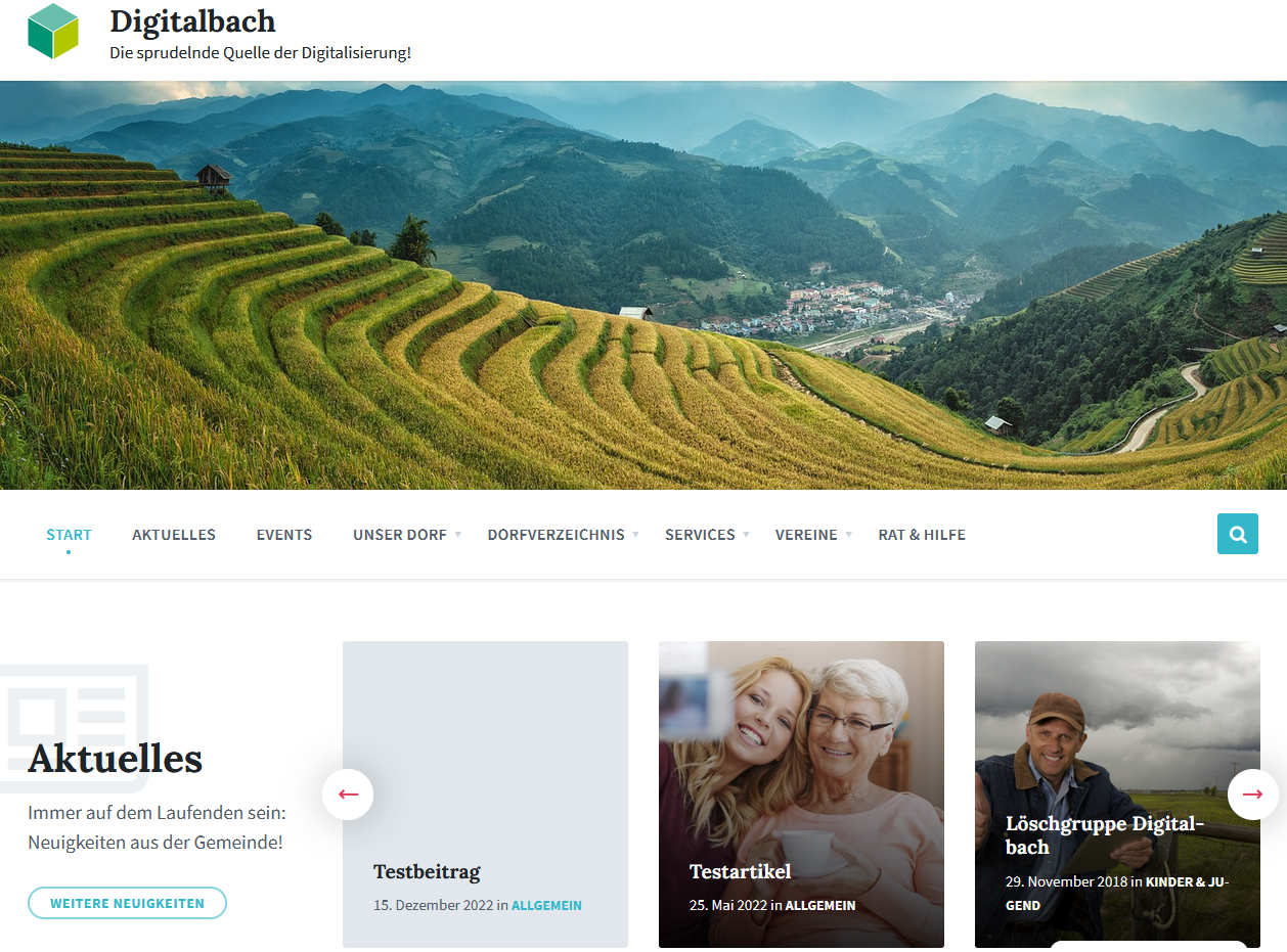 Bitte beachte, dass du in allen Bereichen wo es notwendig ist, immer ein entsprechendes Beitragsbild hinterlegst. Ohne ein Bild, bleibt das Feld grau und deine Dorfpage sieht nicht mehr so schön aus.