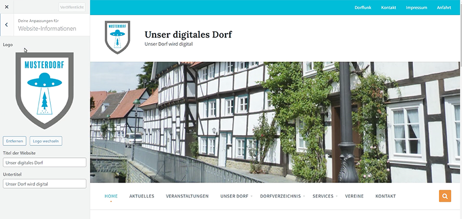 Hier kannst Du das Dorflogo, den Titel und den Untertitel verändern.