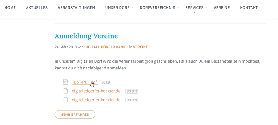Nun findest Du den neuen Download auch im Frontend Deiner Dorfpage unter dem Menupunkt Services und Downloads
