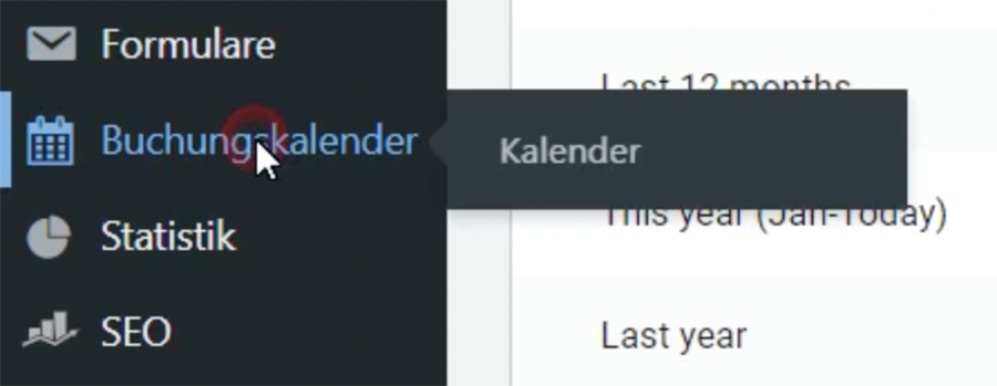 Um einen neuen Buchungskalender anzulegen, wechsle in das Backend Deiner Dorfpage und klicke im Menu auf Buchungskalender.