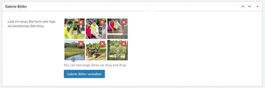 Die Bildbeschriftung dient an erster Stelle auch als zusätzlicher Text unter dem Bild auf der Dorfpage. Besonders bei Galerien ist es hilfreich, wenn zu jedem Bild kurz beschrieben wird, was in dem Bild zusehen ist, oder passiert.