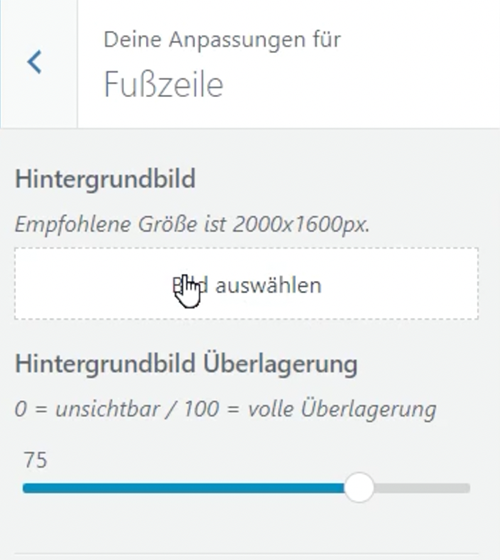 Nun hast Du die Option für die Fußzeile ein Hintergrundbild aus der Mediathek zu laden.