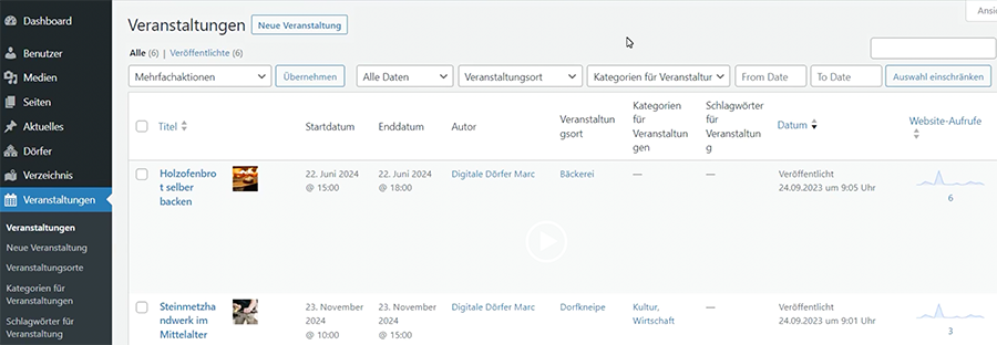 Du hast Veranstaltungen im Backend Deiner Dorfpage angelegt und möchtest diese nun einmal im Frontend der Dorfpage betrachten.